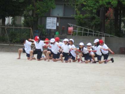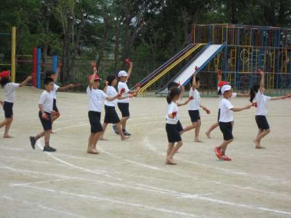 4年生は,運動場で運動会の団体演技「さくら よさこい」の練習をしていました。