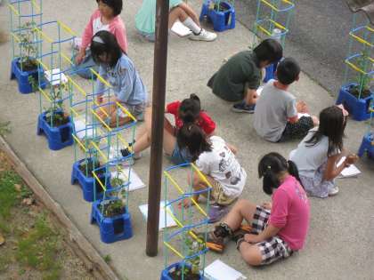 2組では,支柱を立てた後,国語で学習している「かんさつ名人」になろうとヒントカードを使って観察しました。