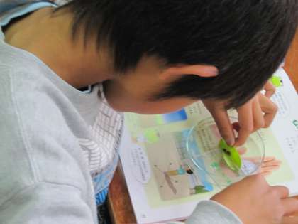 今日の1組では,アゲハチョウの幼虫を観察していました。