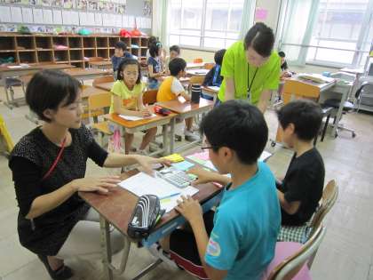 採点・掲示係では,運動会当日にすることをみんなで確かめていました。