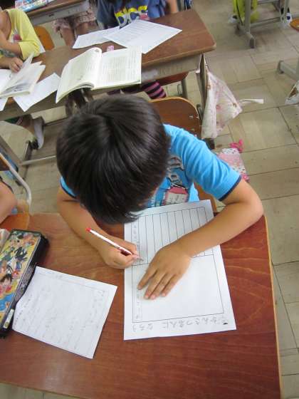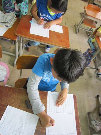 子ども達の様子を見ていると,すらすらと書く子とメモとにらめっこの子とがいました。
