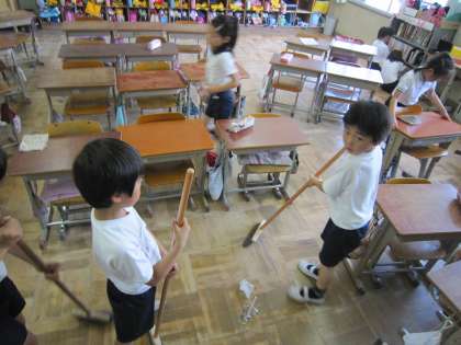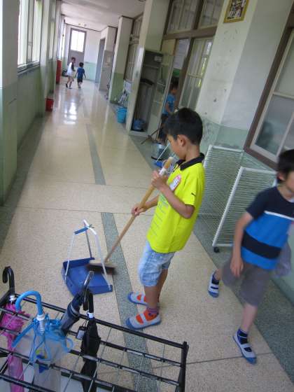 学校は砂埃などで掃き掃除が欠かせません。しっかり掃いてくれるときれいな学校になります。