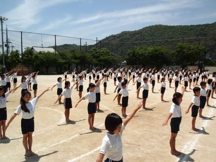 子どもたちの組体操は難度の高い技の出来栄えをめざすのではありません。それよりもただ立っているだけ,並んでいるだけ…などの何気ない姿勢や動きの美しさにこそ魅力があります。