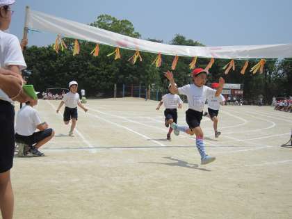 ゴールでは,決勝審判の子ども達が待っていて,順位のカードを渡してくれていました。