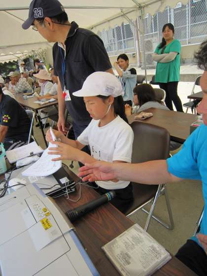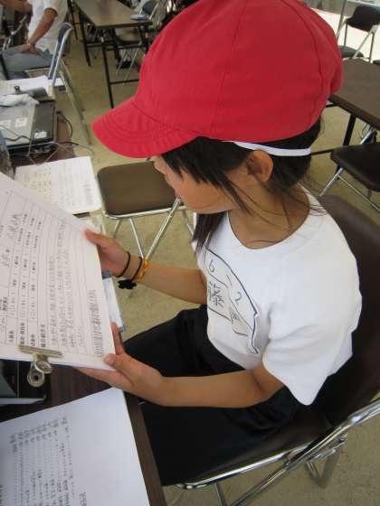 運動場で放送で話すと自分の声より少し遅れて聞こえたりして話しにくいのですが,係の子ども達はしっかりとした声で話していました。