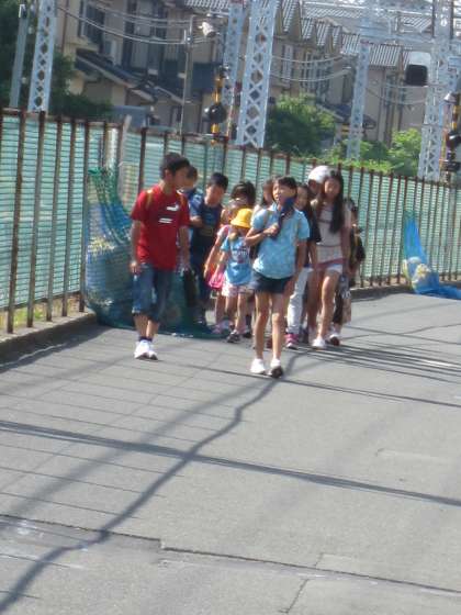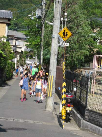 いつものように,見守り隊や保護者の方々と一緒に登校してきた子ども達でした。