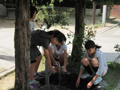 中間休み,ふと玄関前の水道を見ると,数人の子ども達が水で手を洗っていました。とっても気持ちよさそうに手を洗う姿に,「もう夏なんだなあ」と季節を感じました。