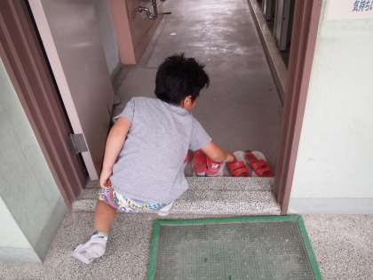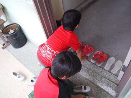 「取材」をしていたらトイレのスリッパを並べてくれている子どもたちがいました。ありがとう!