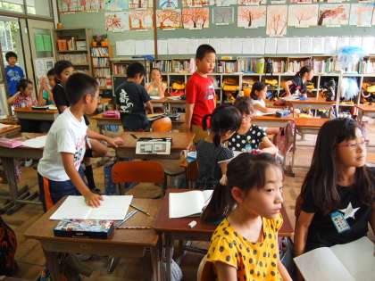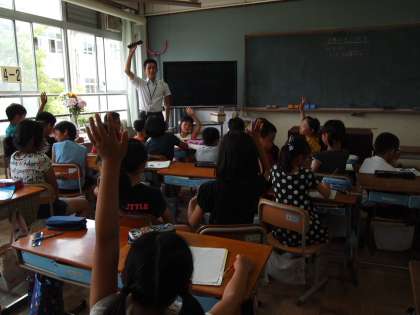 4年2組はビデオを見るところです。「モノづくり」の学習でした。