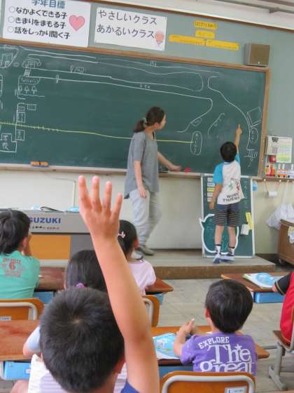2年生は,明日(6月4日)まちたんけんに行きます。今日の2組では,まちたんけんに向けての学習をしていました。