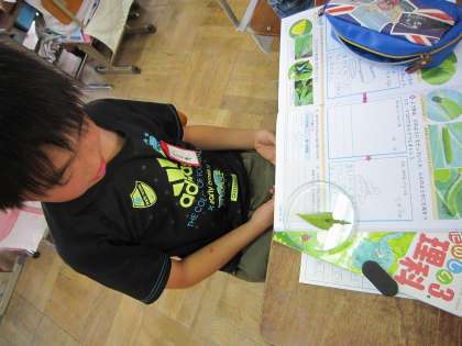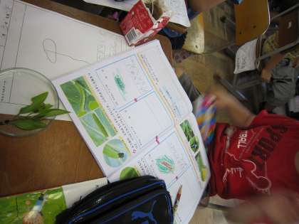 ひまわりやホウセンカの観察のほかに,アゲハの幼虫の観察をしている子もいました。