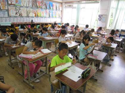 4年1組では,フェルトペンを使った書写に取り組んでいました。