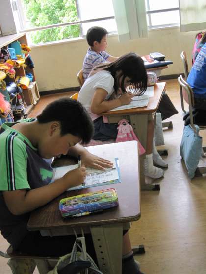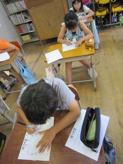 フェルトペンは,えんぴつと違って一度書くと消すことができません。いつもと少し違う中,丁寧に書いていました。