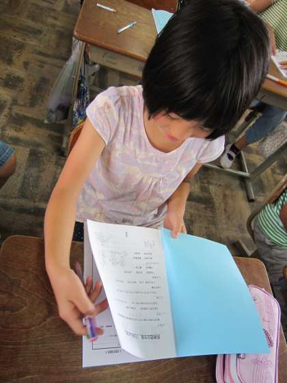 5年1組では,準備の時間中も,しおりを手にどんなことをするのかと興味深そうにしおりを見ている子たちがいました。