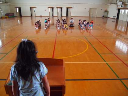 昼休みには2年1組の子どもたちが見に来てくれました。観客がいるとやはり緊張したそうです。