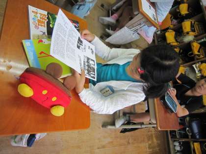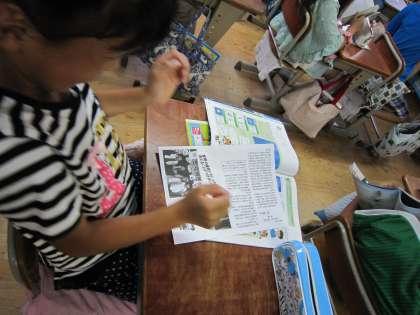 子どもたちは,この日のきらめきタイムニュースをもらって,1校時に聞いた発表を思い出しているようでした。