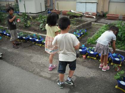 今日はお家に持って帰るために,牛乳パックにつめかえました。
