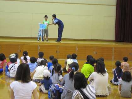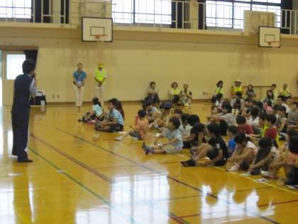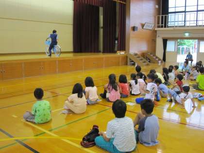 DVDを見た後,警察の方から自転車のブレーキの掛け方を実際に教えてもらいました。