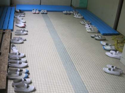 1校時に図書室の前を通ると,靴がきれいに並べてあったのですが,とても静かで誰もいないようでした。