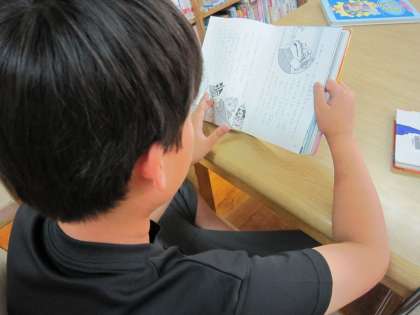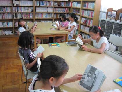 中に入ると,5年2組の子ども達が静かに本と向き合って,本の世界に入っていました。