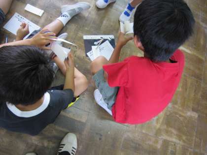 5年1組では,パラパラアニメーションが完成して,互いに見せ合っていました。