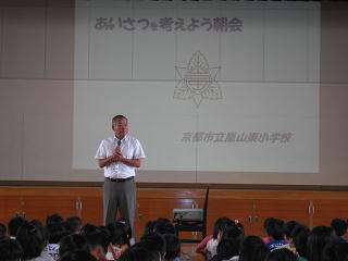 今月の朝会では,あいさつについて考えよういうテーマで校長先生がお話をされました。