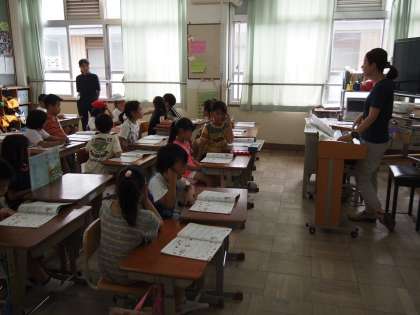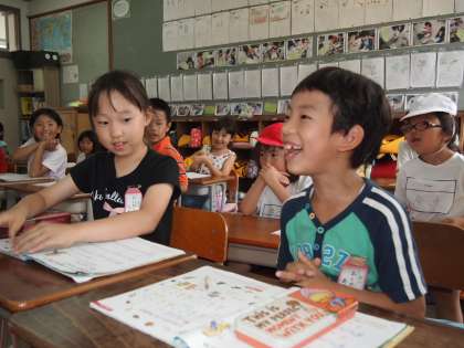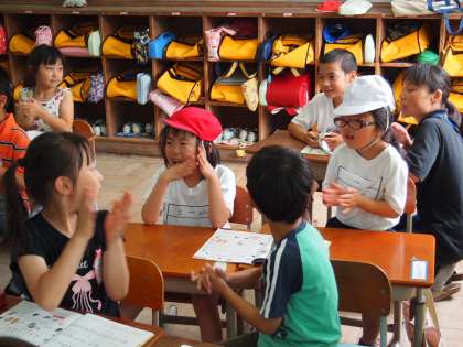2年2組は音楽の時間「どうぶつラップで あそぼう」です。動物の名前を言ったら,その鳴き声を真似て手拍子を打つのです。「ペンギン」の鳴き声も器用に言ってましたが…。