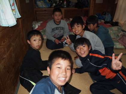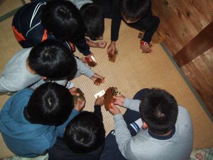 夕食後は自由時間です。男子はロッジで「大富豪」などをしていました。