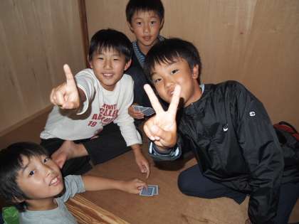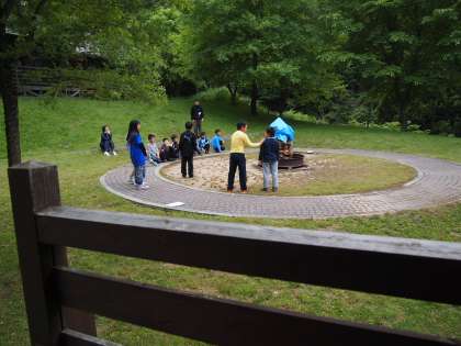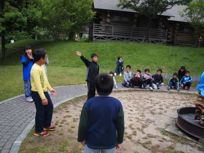 ロッジの隣のキャンプファイアー場では,明日の本番に備えて練習をしていました。