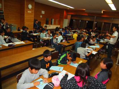 「今日は山登りで疲れた人?」と尋ねたところ,全員が手を挙げました。でも本当に疲れたのは私たち大人のほうでした。(担任の2人はとっても元気ですよ)でも,今夜は子どもたちも昨日以上にぐっすり寝られるのではないかと思います。それにしても嬉しいのはここまで「しんどい」と訴える子やけがをした子が一人もいないということです。天候にも恵まれこんなありがたいことはありません。明日もこの調子でいくように全員が団結します。
