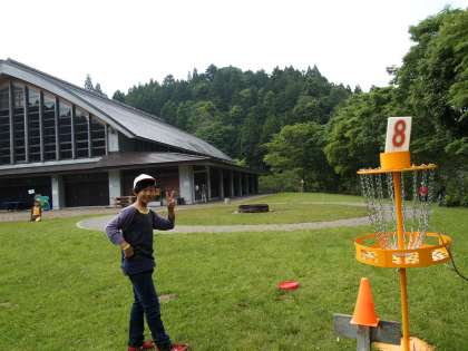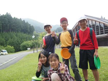 後ろに見えるのが体育館,この場所が山の家の入口付近です。