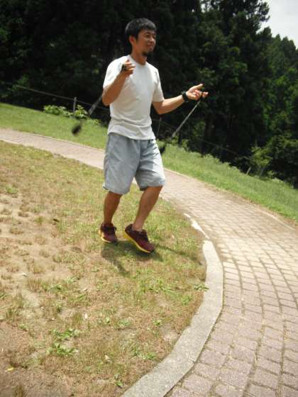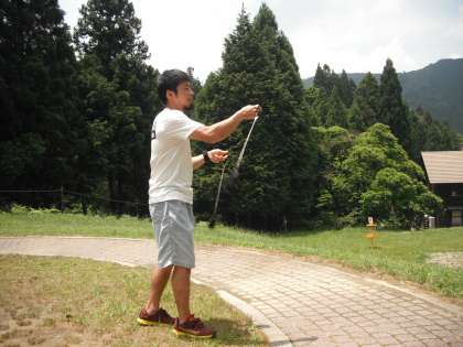 ファイアーダンスの特訓中。キャンプファイアーでパフォーマンスが見られそうです。