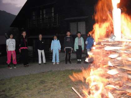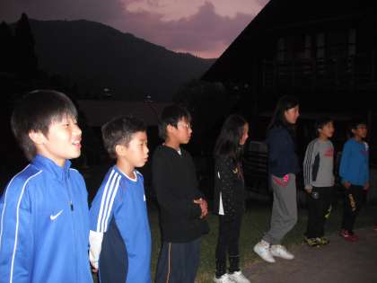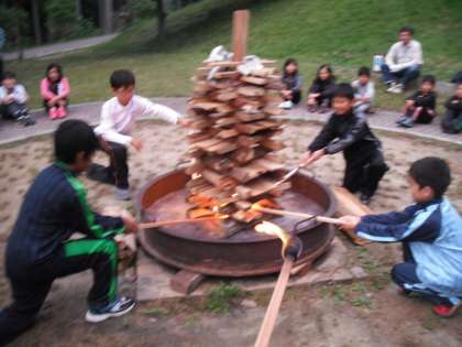 「燃えろよ燃えろ」が流れる中,火の子たちの点火によってファイアーが始まりました。