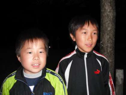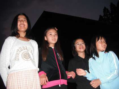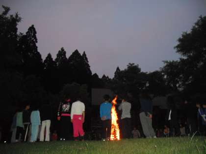 子どもたちから「キャンプファイアーでは運動会の時の曲を歌いたい」とリクエストがあったそうです。で,今歌っているのは「学園天国」です。