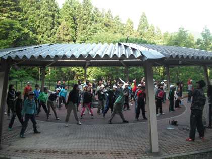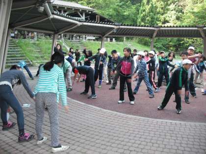 この時間,第1炊飯場では朝食のパックドックを食べ終えて,後片付けをしているところです。それでは時間を1時間半戻して,朝のラジオ体操からHPを更新していきます。