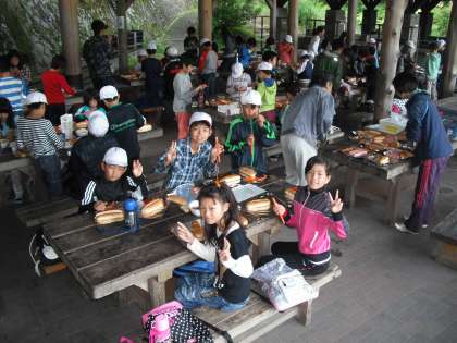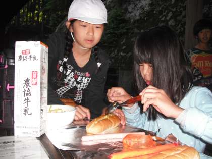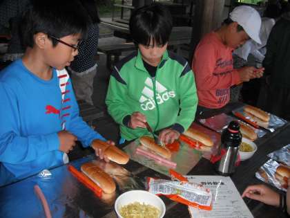 パンにはさんでいるのは,ソーセージとカレー味のキャベツです。