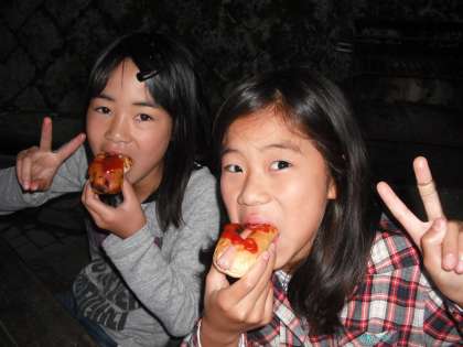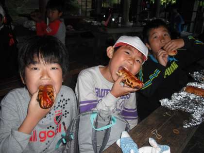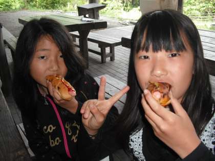ケチャップが口のまわりにこぼれますが,そんなことにかまってはいられません。
