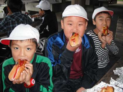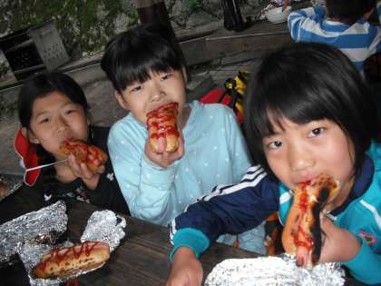 9時20分からはお楽しみの「冒険の森」でのアスレチック,10時30分からは焼き杉板の色付けがあります。では,またあとで…。