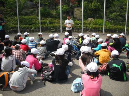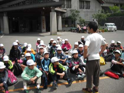 冒険の森に入る前に,担任から「ここまではとても順調にきましたが,ここで気を抜いてけがなどしないようにしよう」とひとこと声かけがありました。