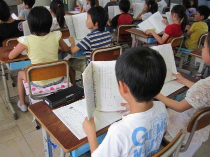 「腰骨を立てて,読みましょう。」という担任の声かけに,子ども達の姿勢がさっとよくなりました。おうちでも,「腰骨を立てて・・・」と言ってみてください。