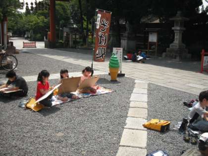 子ども達は,神社の様子をよく見ながら懸命に描いていました。