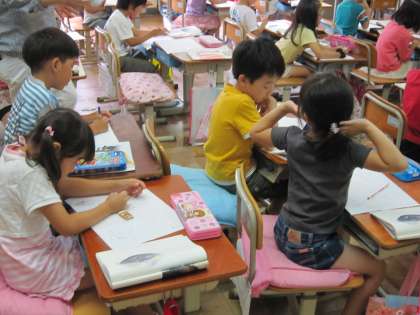 今日は,「さきがくちばしです。これはなんのくちばしでしょう。これは( )のくちばしです。」の( )の中を書く学習をしていました。教科書などに書かれていることを読み取る学習です。簡単そうですが,1年生にとっては難しい学習の一つです。
