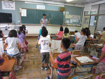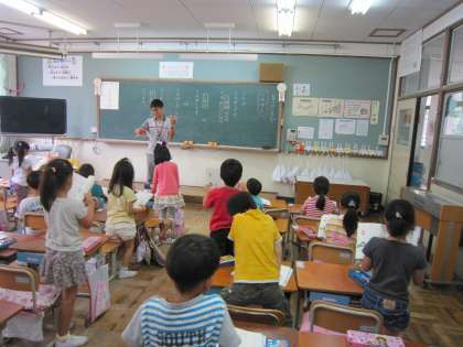 1年2組では,「あいうえおで あそぼう」を順番に立ったり座ったりして音読しています。聞いていると,昨日よりもよく声が出ているように感じました。