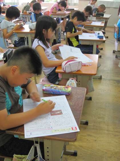4年1組では,国語の「動いて 考えて また動く」の学習を終えて,テストでそれぞれの理解度を確かめていました。子ども達は,物音も立てずに黙々をテスト用紙に向かっていました。