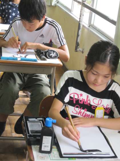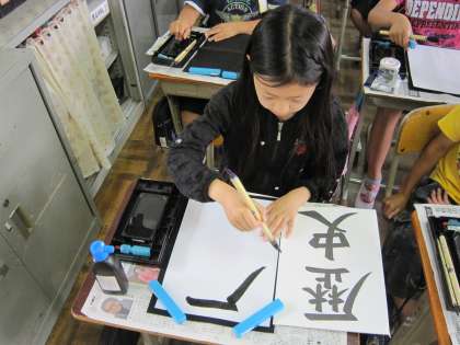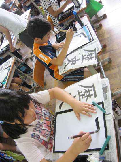 6年2組では,毛筆で「歴史」と書いていました。