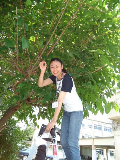 PTA本部さんと用務員さんがクワの実をとっておられました。「おいしいですよ」と言われて一つ食べてみました。「う〜ん,酸っぱいですね」「でも,砂糖を入れてジャムにしたらとてもおいしいんですよ」とのことでした。