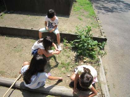 1年生は,草抜きをがんばっていました。