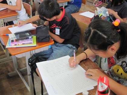 5年2組では,なかよしチャレンジにむけての作文を書いていました。見ていると,みんな真剣に考え考えしながら書いていました。