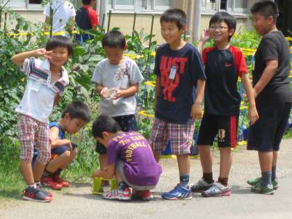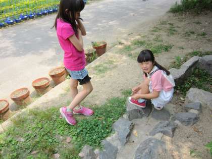 バッタを探す子ども達や四つ葉のクローバーを探す子どもたちもいました。