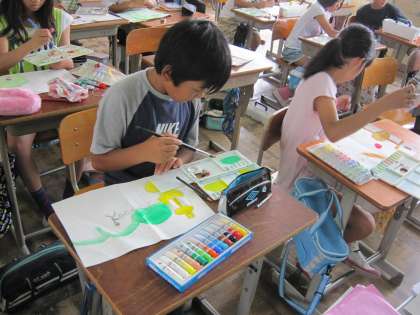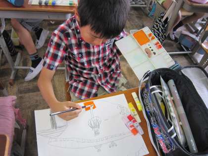 5年1組では,山の家での思い出を「絵」にしていました。
